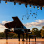 Ergänzt wird dieses himmlische Schauspiel durch farbenprächtige Drachen und Windspielen, die sich leicht im Wind bewegen, über den Wegen tanzen oder als flatternde Kunstwerke entlang der Gartenpfade schweben.